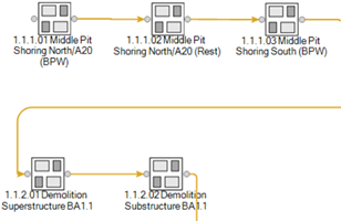 After reworking the information models of the pilot project (models of the existing bridge, new bridge, pit shoring, drainage pipes, etc.) in Revit and connecting the model elements with a previ-ously project-specific developed Work Breakdown Structure, the models are exemplary used for several functions in the software Bexel. Therefor Selection Sets and Custom Breakdown Struc-tures are created. Tools like 3D model coordination, property checking, 4D project scheduling and construction process animation via the zone editor (see Fig. 4), 5D cost data base with assign-ment of cost items to model elements, are presented.