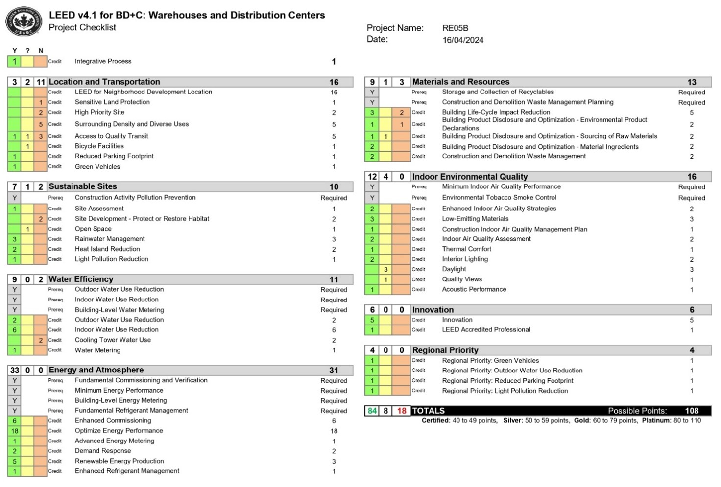 Checklist Platinum: LEED v4.1 for BD+C Warehouse and Distribution Centers to track project goals and progress