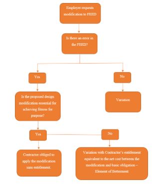 After a brief introduction in Chapter 1, the thesis, in Chapter 2, covers the general practice of construction in the OGP sector, the main features of Project planning and execution, and the contracting strategies adopted by Employers. It then studies the definition and purpose of a typical Project FEED and the design specifications that are woven into it before concluding with the underlying factor of Applicable Law that is relevant to every construction contract.