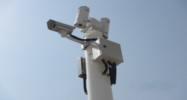 Image 3: Integration of fixed thermal and PTZ cameras on a single pole, illustrating the dual-layered approach to security at critical perimeter points.