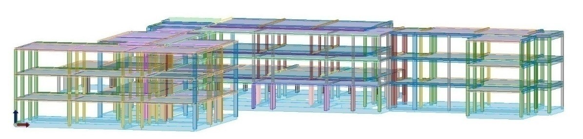 Inizialmente, è stata eseguita la ricerca dei documenti tecnici relativi alla struttura ed, in parallelo, sono stati svolti sopralluoghi in loco per verificare lo stato di degrado delle strutture portanti e di quelle strutturali non portanti. Acquisendo le informazioni necessarie relative ai materiali attraverso prove distruttive e non distruttive, sulla base della geometrie in sito, è stato possibile implementare un modello ad elementi finiti del fabbricato e svolgere, attraverso tale modello, un’analisi dinamica lineare (con fatture di struttura valutato in q = 2.76) col fine di individuare i meccanismi di collasso (rottura fragile e rottura per esaurimento di duttilità) e gli elementi che non verificanti positivamente la misura della sicurezza, sia in termini meccanici che di deformazione. Tra le carenze costruttive più lampanti si è notato come la gran parte degli elementi in c.a. presentava armatura insufficiente a taglio per sostenere le azioni sismiche, ciò ad evidenza di come all’epoca esse furono progettate e dimensionate ai soli fini statici.