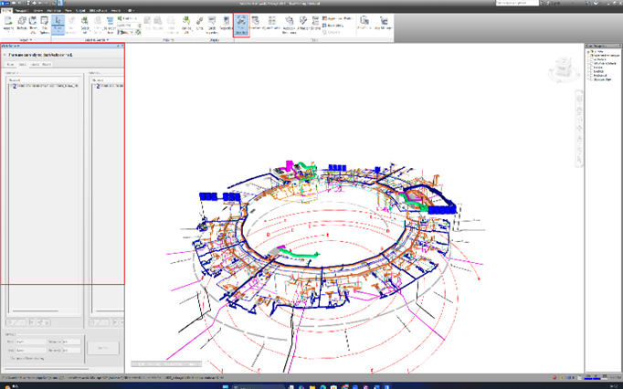 Il modello 3D dinamico risultante ha fornito computi metrici precisi, specifiche dettagliate dei materiali e ha facilitato l’evoluzione verso le applicazioni BIM 4D e 5D. Una volta completata la modellazione, abbiamo utilizzato Autodesk Navisworks per effettuare un’analisi delle interferenze (clash detection) tra le discipline. I risultati hanno evidenziato circa 3.000 interferenze, tra cui problemi frequenti come: conflitti tra impianti e facciate, elementi strutturali e facciate, impianti e strutture, ecc.