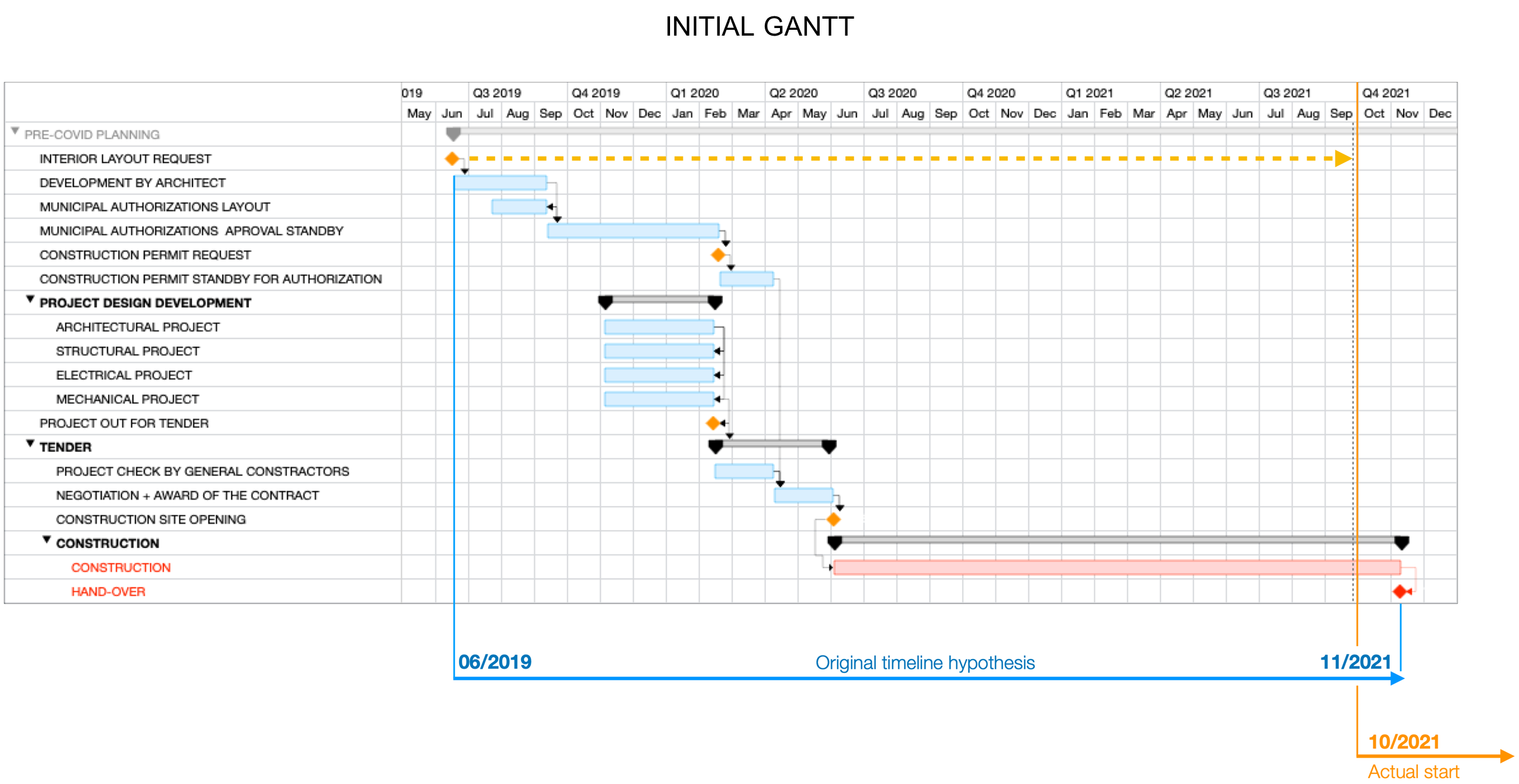 Established hierarchies and lines of communication were being constantly overturned and re-arranged on a daily basis, according to specific needs and unclear priorities. As a result, this led to misinformation and doubts within each team, creating a lack of control and direction, particularly regarding the management of the construction site, the project’s execution timeline, and the budget.