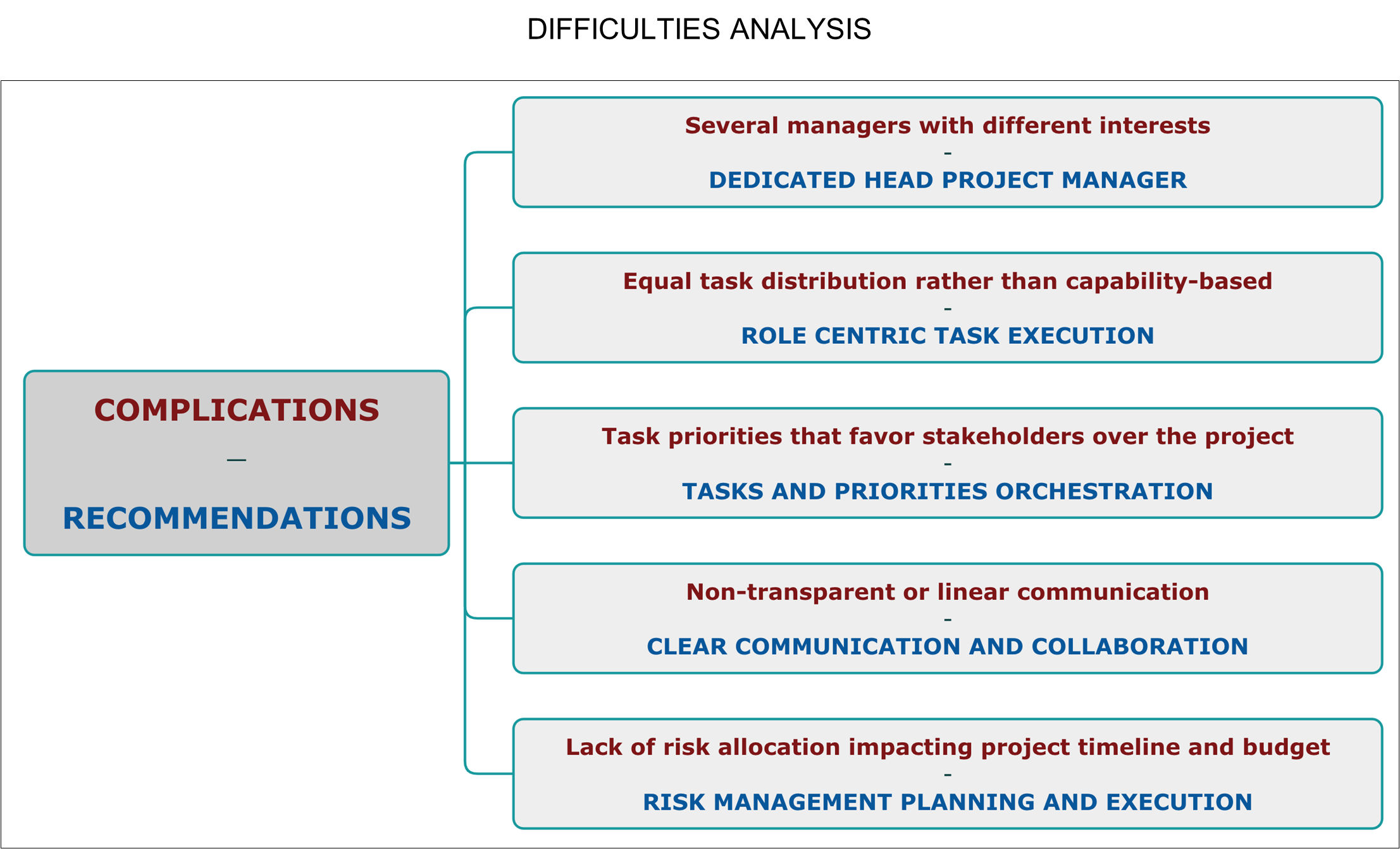 The numerous practical recommendations derived from this case study are tools that could have helped during the navigation of this specific project and that resulted from the main issues that had to be endured, however, they certainly serve as future practices worth considering implementing in intricate projects with multifaceted stakeholder relationships where work standards are not met for a variety of reasons. Even though no project is the same, the tools that compose the foundation of project management exist to help both the project and the manager towards the desired result.