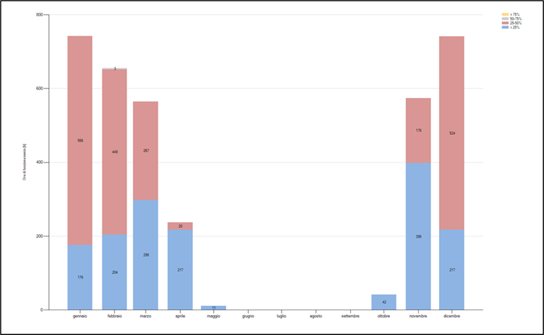 Figura 2 – Ore di funzionamento mensili dell’impianto di riscaldamento