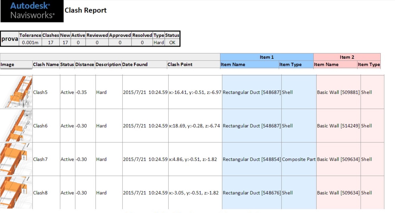 Figura 3: Clash 1 (3D model) - Perspective View 1 e report.