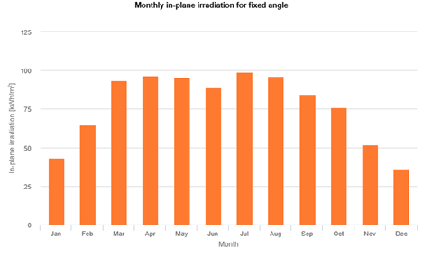 Figura 2: Irraggiamento mensile sulla facciata dell’edificio di riferimento