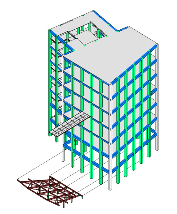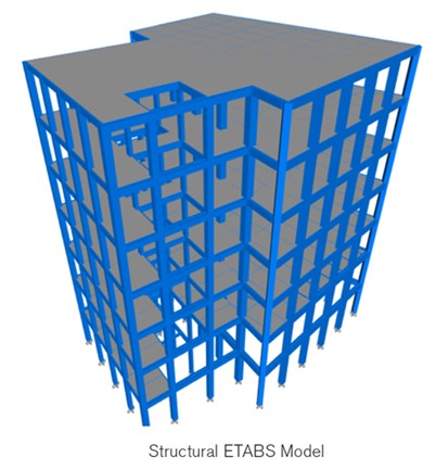 L’analisi strutturale viene eseguita utilizzando il software di analisi e progettazione strutturale ETABS V18.0.2 sviluppato da Computers & Structures, Inc. Per valutare gli effetti del carico sismico, l’edificio è vincolato alla soletta strutturale del tetto del seminterrato e la sovrastruttura è modellata senza il basamento .