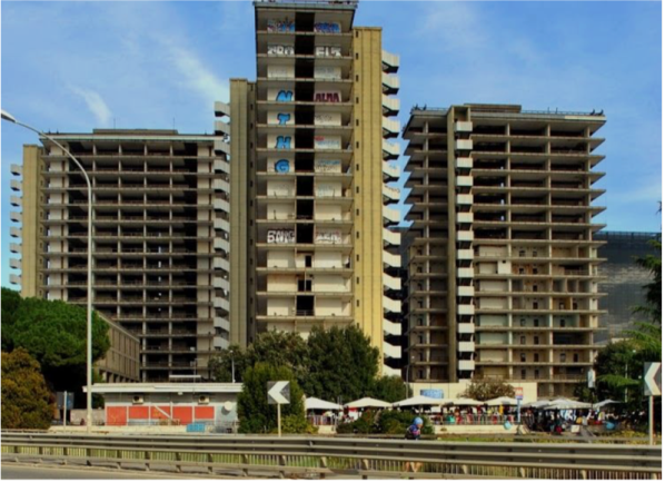 E’ il caso delle torri Telecom ubicate presso il quartiere EUR a Roma, le quali, edificate verso la metà degli anni ’50, hanno ospitato fino a circa quindici anni fa gli uffici del  Ministero delle Finanze. Il progetto di riqualificazione delle torri è stato oggetto di un concorso internazionale nel quale si prevedeva anche la progettazione e realizzazione del HQ di Telecom Italia, in ossequio alle NTC 2008 e con particolare attenzione ai temi della Sostenibilità.
