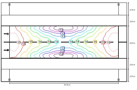 Figura 2 - Curve isolux in condizioni di progetto per la carreggiata