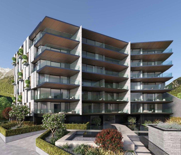 The building complex consists of 7 floors above ground, to be used as apartments, and 2 underground floors to be used as car parks. The total height of the building is approximately 23 m and it has a gross commercial area of around 1385 m2. The roof, which can be inspected but not commonly accessible, will be equipped with 230 photovoltaic panels to produce electricity from renewable solar power.