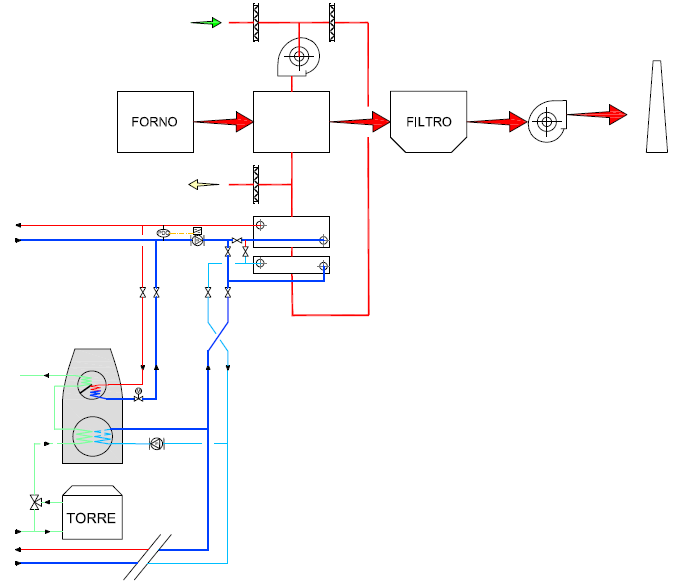 Nel secondo, è stato sviluppato il miglioramento energetico di una fabbrica di bottiglie in vetro in Trentino. La richiesta pervenuta allo studio TESI ENGINEERING di Trento è stata quella di studiare un sistema di recupero entalpico dell’aria calda espulsa dallo scambiatore in equicorrente fumi-aria a valle del forno fusorio, finalizzato a ridurre l’impiego della caldaia a gas per il riscaldamento invernale degli ambienti di lavoro. La proposta elaborata consiste nell’ampliare il già presente sistema di convogliamento dell’aria a circuito aperto con ulteriori condotte, serrande servo-comandate e controllori programmabili, per consentirne l’esercizio anche in circuito chiuso e incrementandone così il recupero energetico dello scambiatore aria-acqua. Per la produzione di acqua fredda utile al raffrescamento estivo, è stato proposto l’inserimento di un refrigeratore ad assorbimento Br-Li. Infine, particolari accorgimenti impiantistici, consentono di far funzionare il refrigeratore ad assorbimento in due modalità: “estiva” per la produzione di acqua fredda ed “invernale” per la produzione di acqua calda. L’economia di interventi di miglioramento energetico trova, quindi, equilibrio tra riduzione dei consumi per la produzione e riutilizzo delle sorgenti di calore al fine di riscaldare e raffreddare edifici di supporto ad uso ufficio o produttivo con la permanenza di persone.